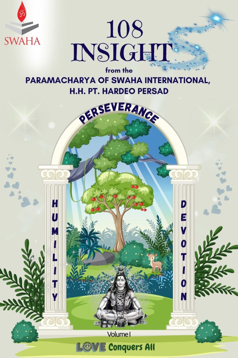As the introduction to the book simply states: “108 Insights is the work of love of a SWAHA devotee, who seeks to share with the world the spiritual gems of wisdom of the Paramacharya of SWAHA International, H.H. Pt. Hardeo Persad.